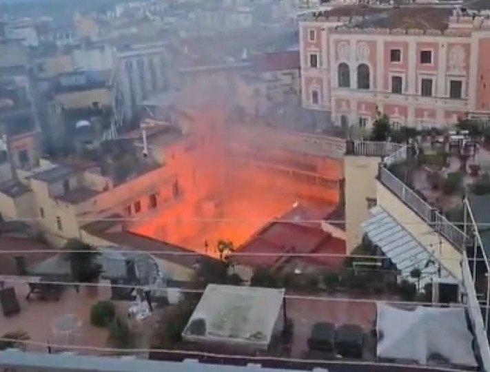 (ANSA) - NAPOLI, 17 FEB - Le fiamme, alte, il fumo denso. Paura tra i residenti della centralissima via Chiaia. pic.twitter.com/wTeXSawHCt
