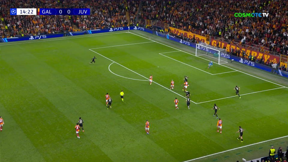 Στο 15’ η άμυνα της Γιουβέντους έκανε τραγικό λάθος και ο Σάρα με πλασέ από το ύψος της περιοχής έγραψε το 1-0.