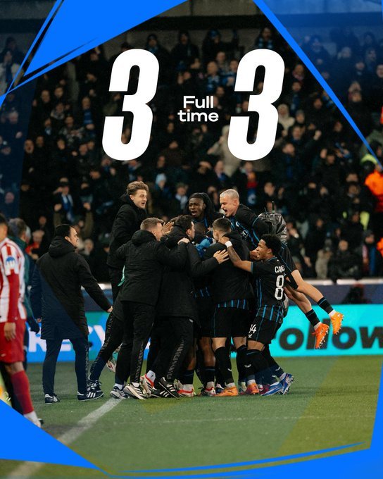 Απίθανη ματσάρα στο Μπριζ, όπου η Κλαμπ και η Ατλέτικο ήρθαν ισόπαλες 3-3 και όλα έμειναν ανοικτά εν όψει του επαναληπτικού της Μαδρίτης. Γκολ ο Τζόλης στο 90ο λεπτό.