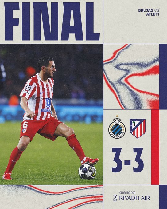 Απίστευτο ματς στο Βέλγιο. Η Ατλέτικο προηγήθηκε, η Μπριζ ισοφάρισε, οι “καλτσονέρος” ανέκτησαν το προβάδισμα, όμως με γκολάρα του Χρήστου Τζόλη στο 90′ οι Βέλγοι ισοφάρισαν σε 3-3 στο πρώτο μεταξύ τους παιχνίδι στα playoffs του Champions League, αφήνοντας ανοικτούς λογαριασμούς ενόψει της ρεβάνς.