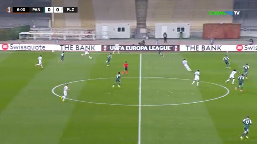 Πρώτη ευκαιρία του ματς είναι για την Πλζεν με τον Χροσόφσκι να βρίσκει λίγο χώρο για τον εαυτό του έξω από την «πράσινη» περιοχή, αλλά το τελείωμα του πέρασε πάνω από τα δοκάρια.