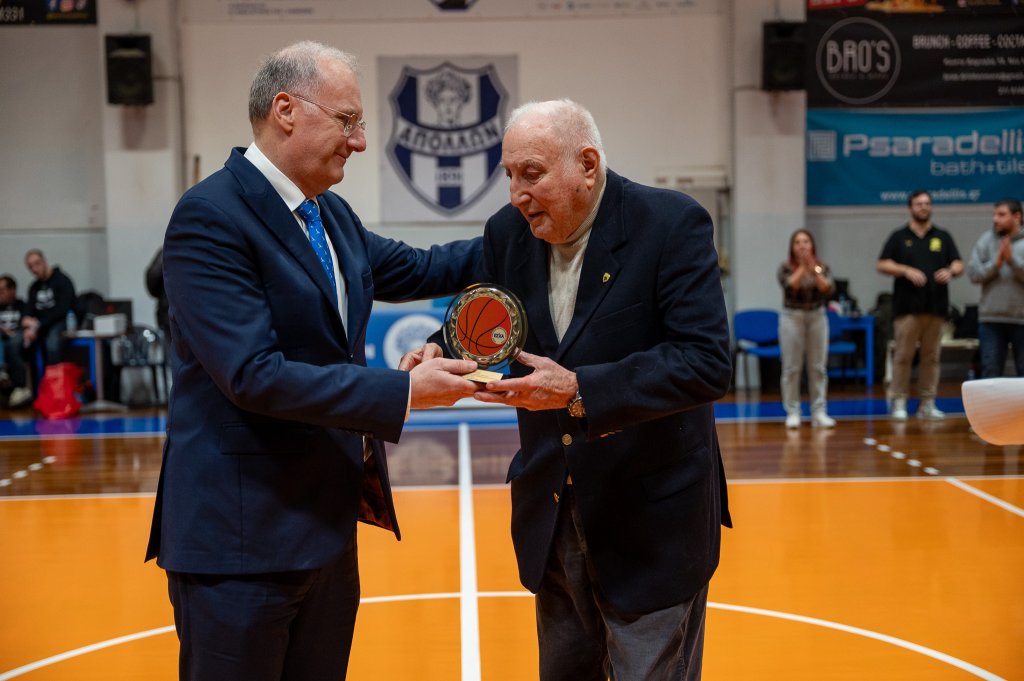 Όλο το γήπεδο όρθιο τίμησε έναν άνθρωπο που υπηρέτησε το άθλημα με ανιδιοτέλεια και που συνδέει τις γενεές και τους αθλητές του παρελθόντος και του σήμερα.