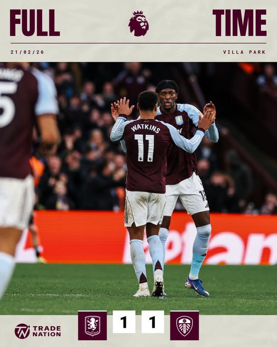Μοιρασιά στο «Βίλα Παρκ», με την Άστον Βίλα να έρχεται ισόπαλη 1-1 με τη Λιντς και να λέει κι ευχαριστώ.