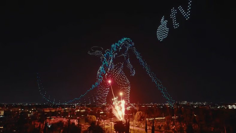 Το βράδυ της Παρασκευής η Apple TV διοργάνωσε ένα εντυπωσιακό φωτεινό σόου με drones για να διαφημίσουν την πρεμιέρα της δεύτερης σεζόν της σειράς «Monarch: Legacy of Monsters».