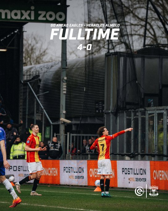 Η Γκόου Αχέντ Ιγκλς διέλυσε με 4-0 την Χέρακλες, έκανε άλμα παραμονής και ταυτόχρονα άφησε τη σημερινή αντίπαλό της στον πάγκο της βαθμολογίας. Στο 30’ ο Τένγκστεντ έδωσε το προβάδισμα στην Γκόου Αχέντ Ιγκλς, με τον Μεουλένστεν στο 52’ να ανεβάζει τον δείκτη του σκορ στο 0-2. Στο 63’ ο Σουράι και στο 69’ ο Μπρέουμ διαμόρφωσαν το τελικό 4-0.