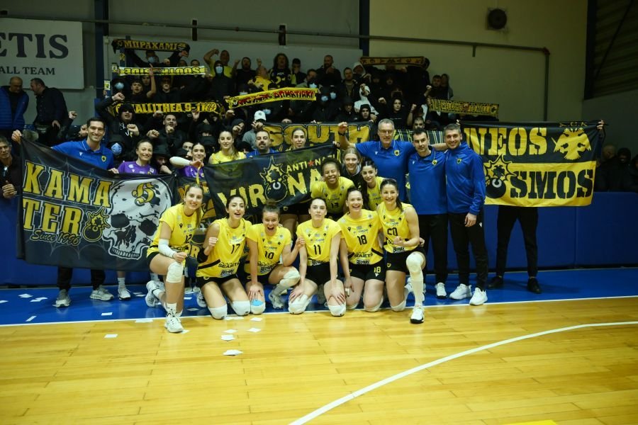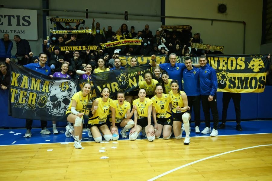 Η ΑΕΚ νίκησε την Θέτιδα στην Βούλα και πανηγύρισε την επικράτηση με τον κόσμο της που έδωσε δυναμικό παρών στο κλειστό και στήριξε τα κορίτσια.