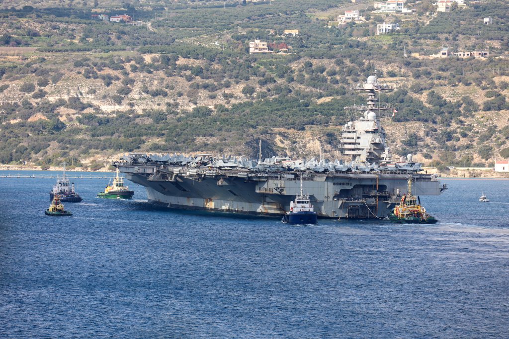 Το αεροπλανοφόρο «Gerald Ford» βρίσκεται εδώ και λίγες μέρες στη Μεσόγειο. Έκανε μια στάση στη βάση της Σούδας και τελικός του προορισμός είναι το λιμάνι της Χάιφας στο Ισραήλ.