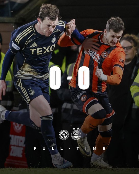 Στο 0-0 κόλλησαν Νταντί Γιουνάιτεντ και Αμπερντίν και παραμένουν αρκετά μακριά από την εξάδα. Συγκεκριμένα η Νταντί Γ. βρίσκεται στο -9 από το Φόλκερκ και η Αμπερντίν στο -10 κι ενώ έχουν από ένα ματς λιγότερο.