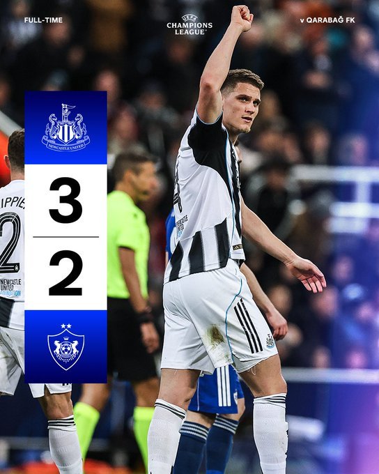 Πρόκριση στο ρελαντί για τη Νιούκαστλ, που επικράτησε της Καραμπάγκ με 3-1 και πήρε το εισιτήριο για τους «16» με συνολικό σκορ, 9-3. Τσέλσι ή Μπαρτσελόνα η επόμενη αντίπαλος της ομάδας του Έντι Χάου.