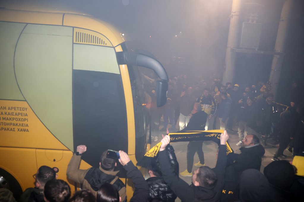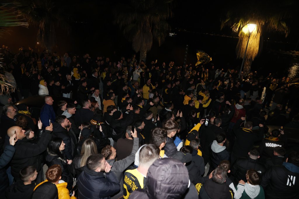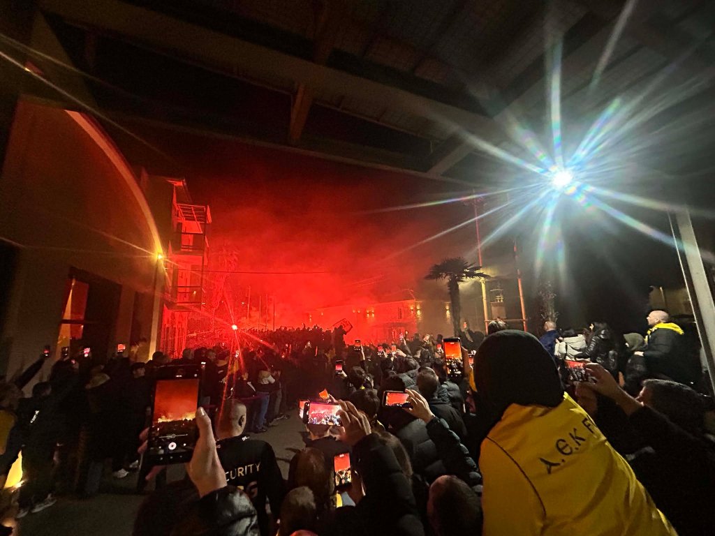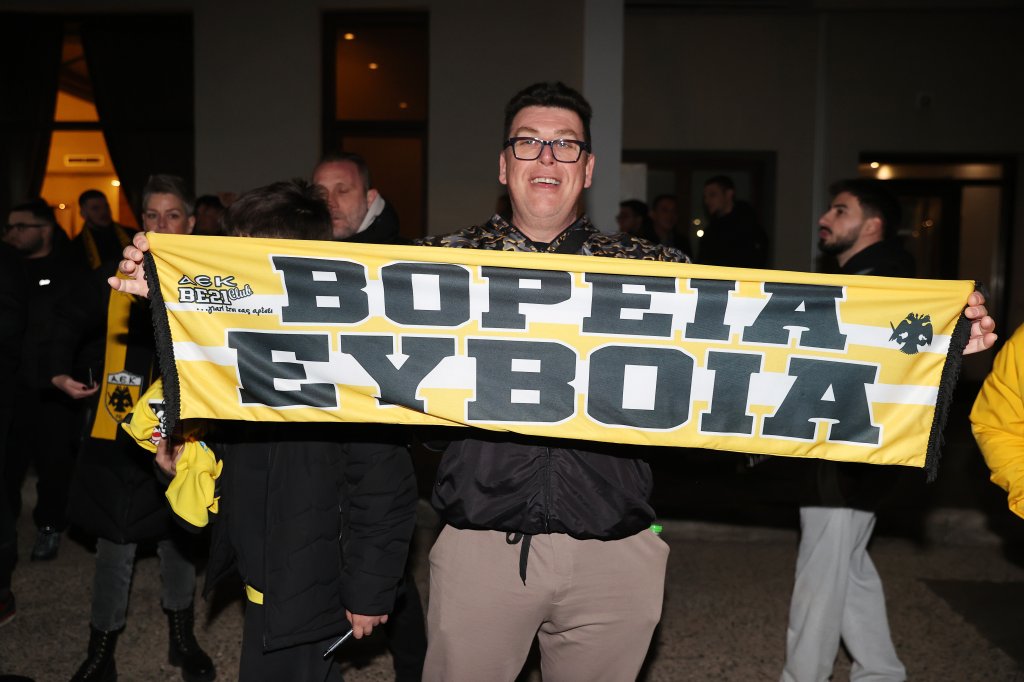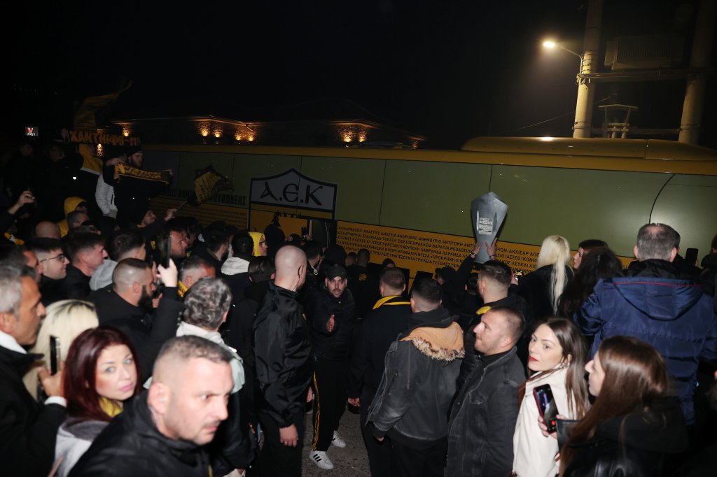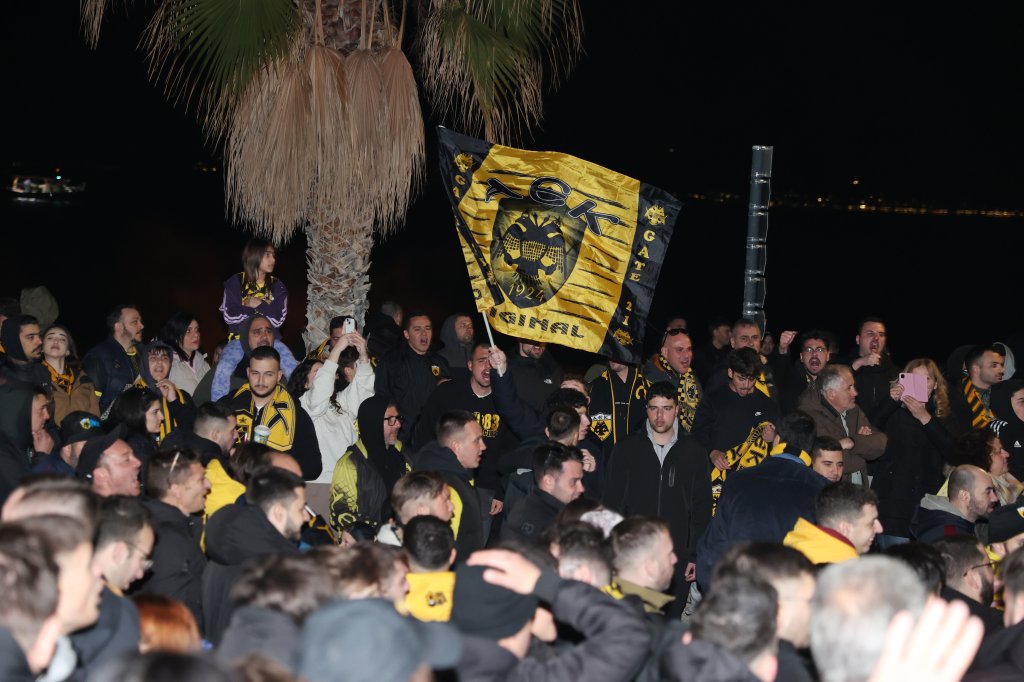 Μία πρώτη… γεύση απ’ όσα μοναδικά θα ζήσουν την Κυριακή στο Πανθεσσαλικό βίωσε η αποστολή της ΑΕΚ το βράδυ του Σαββάτου (28/2). Η αποστολή έφτασε στον Βόλο και έτυχε θερμής υποδοχής από πολλούς Ενωσίτες που βρέθηκαν στην υποδοχή.