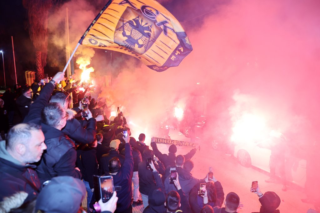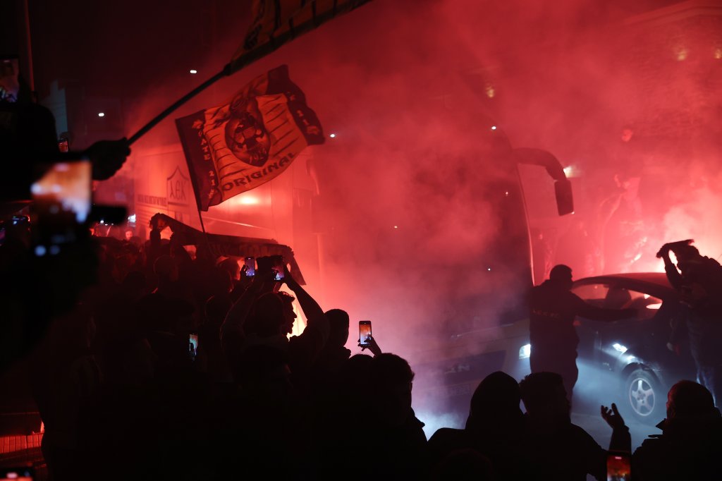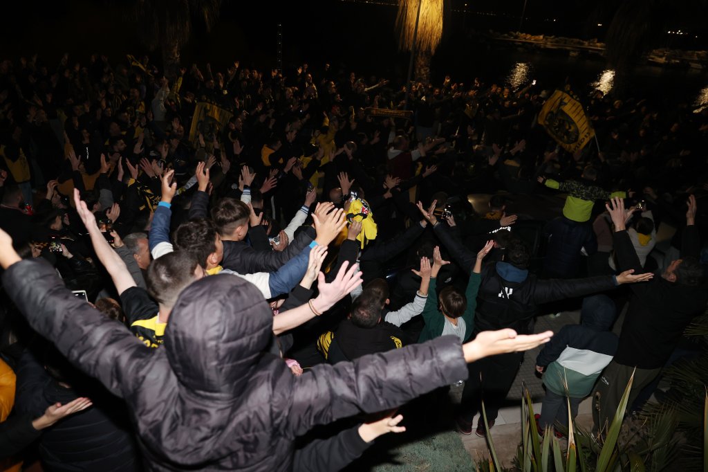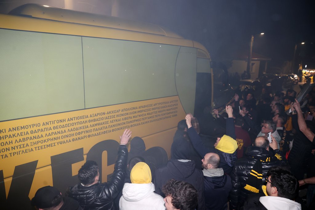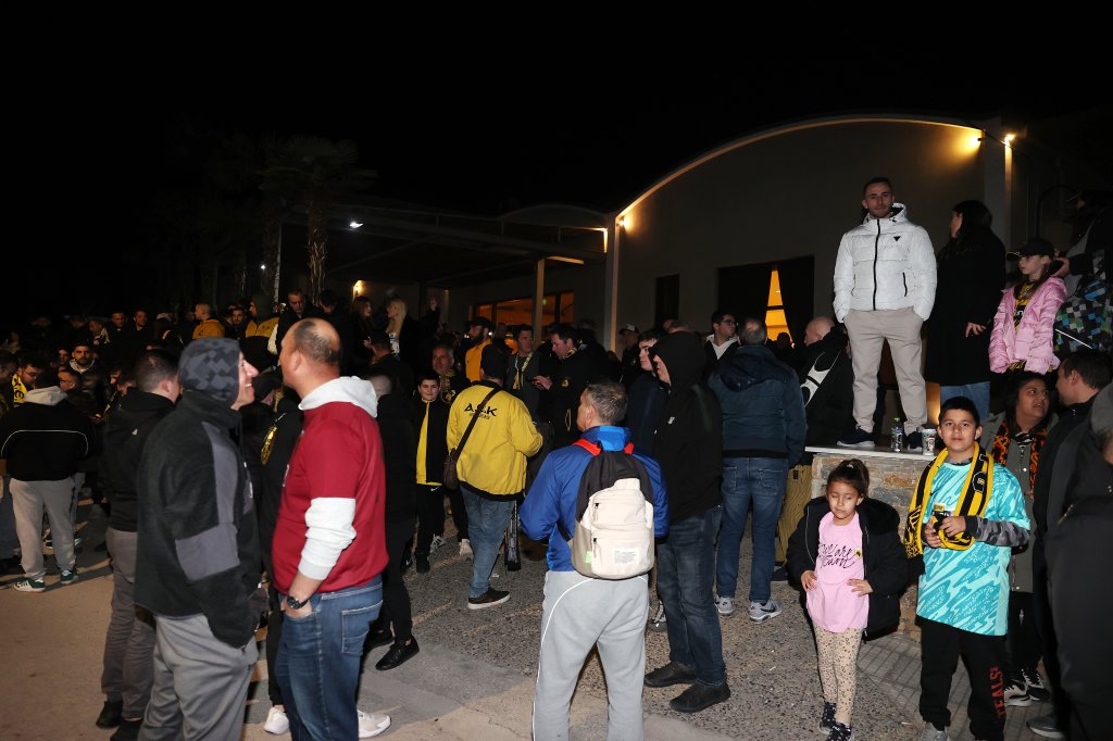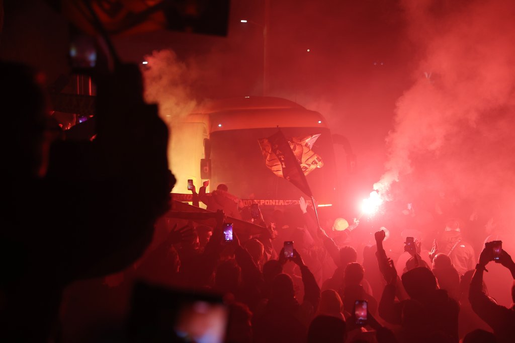 Μία πρώτη… γεύση απ’ όσα μοναδικά θα ζήσουν την Κυριακή στο Πανθεσσαλικό βίωσε η αποστολή της ΑΕΚ το βράδυ του Σαββάτου (28/2). Η αποστολή έφτασε στον Βόλο και έτυχε θερμής υποδοχής από πολλούς Ενωσίτες που βρέθηκαν στην υποδοχή.