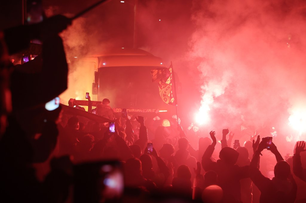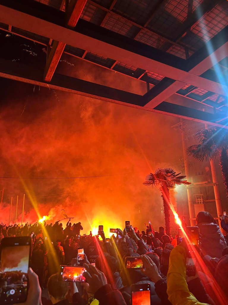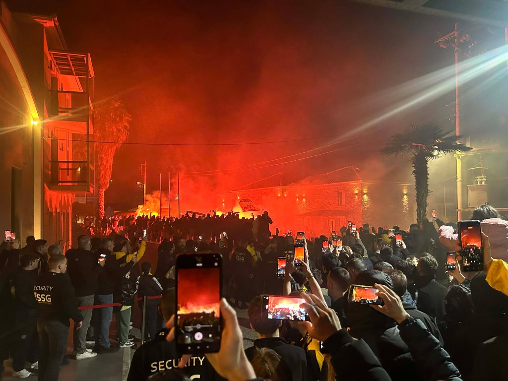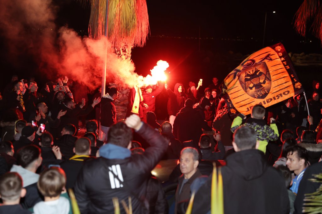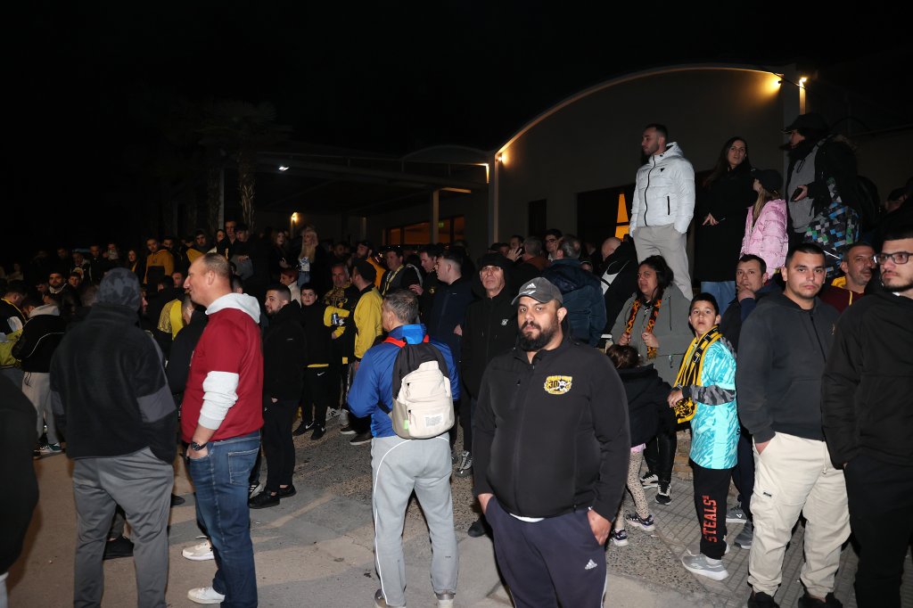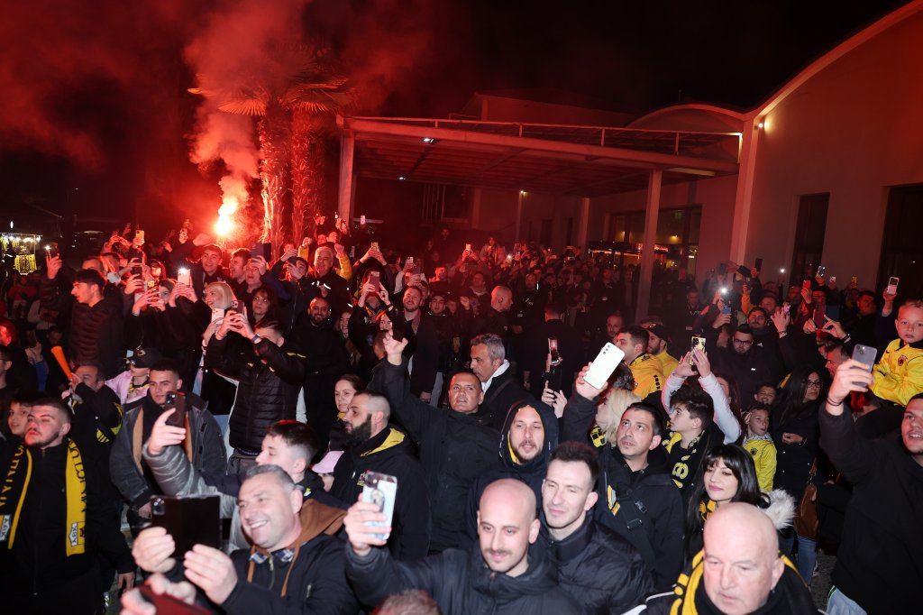Μία πρώτη… γεύση απ’ όσα μοναδικά θα ζήσουν την Κυριακή στο Πανθεσσαλικό βίωσε η αποστολή της ΑΕΚ το βράδυ του Σαββάτου (28/2). Η αποστολή έφτασε στον Βόλο και έτυχε θερμής υποδοχής από πολλούς Ενωσίτες που βρέθηκαν στην υποδοχή.