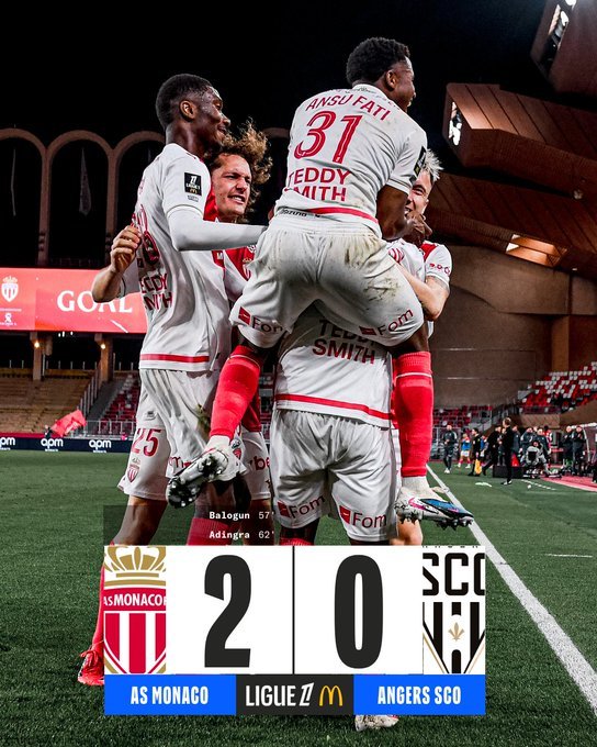 Η Μονακό επικράτησε 2-0 της Ανζέ και παρέμεινε σε τροχιά Ευρώπης. Στο 52’ ο Μπαλογκάν έδωσε το προβάδισμα στους γηπεδούχους με τον Αντινγκρά στο 62’ να διαμορφώνει το τελικό σκορ