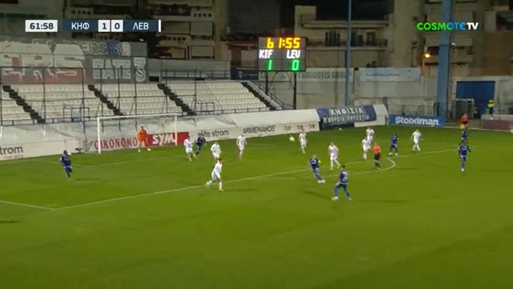Άουτ η κεφαλιά του Χριστόπουλου από τη σέντρα του Λαρουσί.