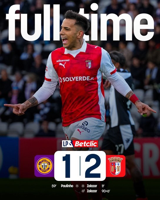 Η Μπράγκα βρισκόταν μια...ανάσα απο το να γκελάρει στην έδρα της Νασιονάλ, ωστόσο, χάρη σε τέρμα του Ζάλαζαρ στο 90+6' πήρε τη νίκη με σκορ 2-1 και παρέμεινε μόνη στη 4η θέση. Στο 11’ ο Ζάλαζαρ έδωσε το προβάδισμα στους «αρσεναλίστας», με τον Μπόια στο 59’ να φέρνει το ματς και πάλι στα ίσα. Στο 90+6' ο Ζάλαζαρ με πέναλτι διαμόρφωσε το τελικό σκορ.