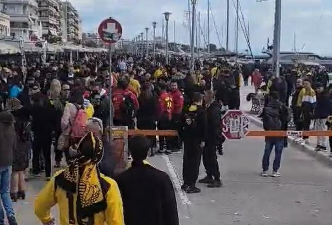 Λίγες ώρες πριν το παιχνίδι στο Πανθεσσαλικό, το λιμάνι του Βόλου έχει πάρει κιτρινόμαυρο χρώμα από τους χιλιάδες φίλους της ΑΕΚ.