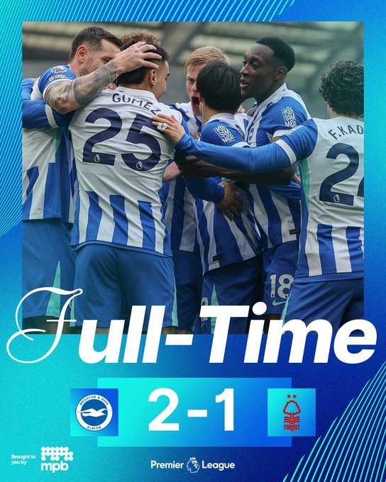 Η Μπράιτον επικράτησε με 2-1 της Νότιγχαμ Φορέστε και την άφησε μόλις δύο πόντους από τη ζώνη του υποβιβασμού.