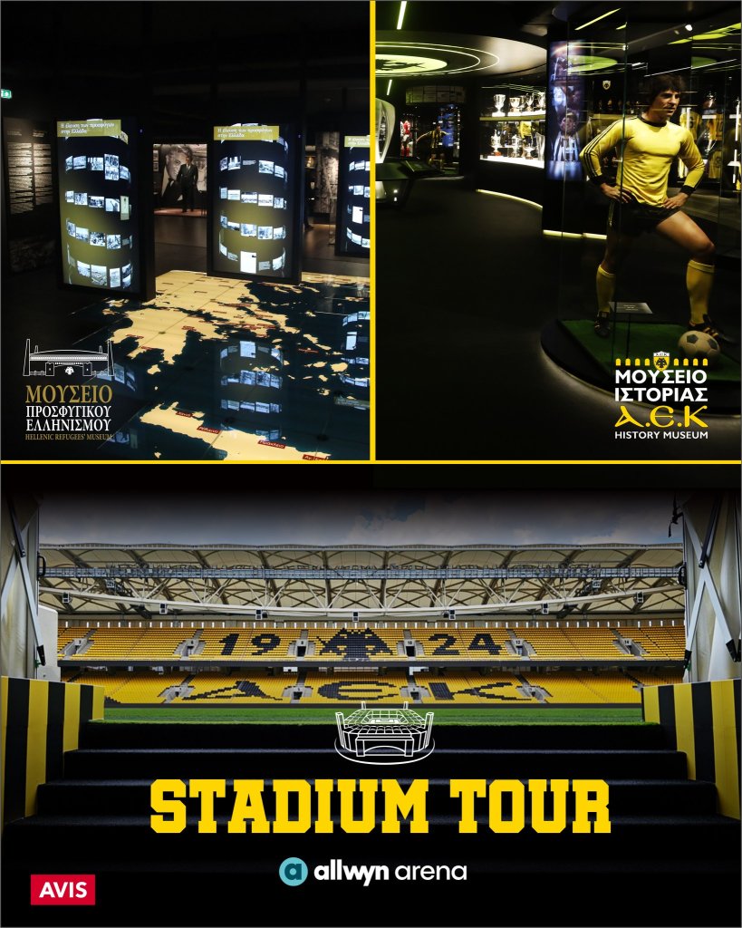 Νέα μεγάλη προσφορά από τα Μουσεία Προσφυγικού Ελληνισμού και Ιστορίας της ΑΕΚ στην ALLWYN Arena! Από την Τρίτη 3 έως και την Κυριακή 8 Μαρτίου, με την αγορά ενός κανονικού εισιτηρίου για το Μουσείο Προσφυγικού Ελληνισμού ή για το Μουσείο Ιστορίας της ΑΕΚ, ο επισκέπτης θα λαμβάνει άλλο ένα εισιτήριο δωρεάν.