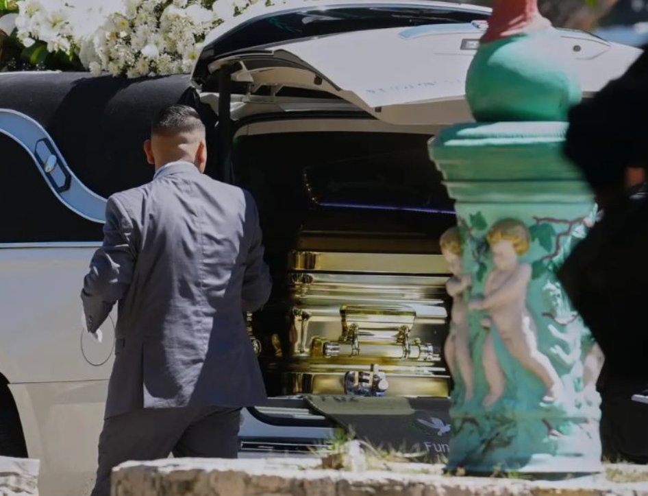 Δεκάδες άνθρωποι συνόδευσαν την πομπή, πολλοί κρατώντας μαύρες ομπρέλες παρά τον ηλιόλουστο καιρό, ενώ μπάντα έπαιζε μουσική «banda», είδος παραδοσιακής μεξικανικής μουσικής.