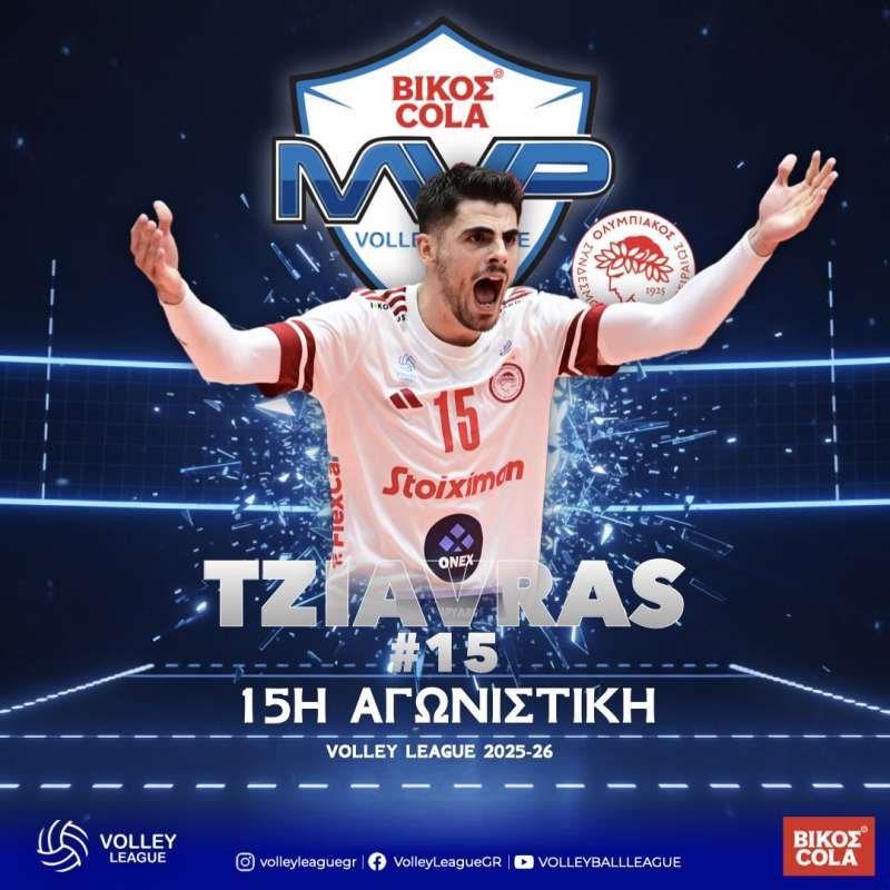 Ο Δημήτρης Τζιάβρας αναδεικνύεται για δεύτερη φορά MVP Βίκος Cola στο πρωτάθλημα Volley League μετά την 15η αγωνιστική τη σεζόν 2022-23.