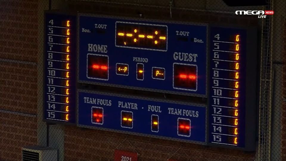 Πρόβλημα στον πίνακα του σκορ και διακοπή αρκετών λεπτών στο ντέρμπι, που εκείνη την ώρα είχε βρει μπροστά την ΑΕΚ με 16-18