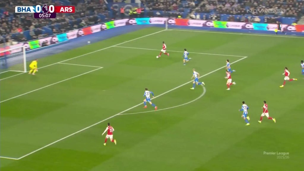 Η πρωτοπόρος Άρσεναλ νίκησε 1-0, στην έδρα της Μπράιτον, και αύξησε τη διαφορά της, από τη δεύτερη Μάντσεστερ Σίτι, στους επτά βαθμούς. Μόλις στο δεύτερο λεπτό, η Άρσεναλ γλίτωσε το γκολ, με τον Γκάμπριελ να σώζει πάνω στη γραμμή, και, στο 9', η ομάδα του Αρτέτα πήρε το προβάδισμα. Ο Σάκα συνέκλινε, σούταρε, η μπάλα βρήκε στον Μπαλεμπά και ο γκολκίπερ αιφνιδιάστηκε για το 0-1. Στο υπόλοιπο του παιχνιδιού, η Άρσεναλ διαχειρίστηκε το προβάδισμά της χωρίς να απειλείται και, στο φινάλε, έκανε ακόμα ένα βήμα προς την κατάκτηση του τίτλου.