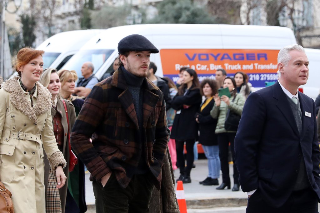 Λίγα λεπτά πριν από τις 15:00 ο διάσημος ηθοποιός έφτασε στην πλατεία Κοτζιά και κατευθύνθηκε στο καμαρίνι του, ενώ η περιοχή γύρω από το δημαρχείο έχει μετατραπεί σε κινηματογραφικό σκηνικό.