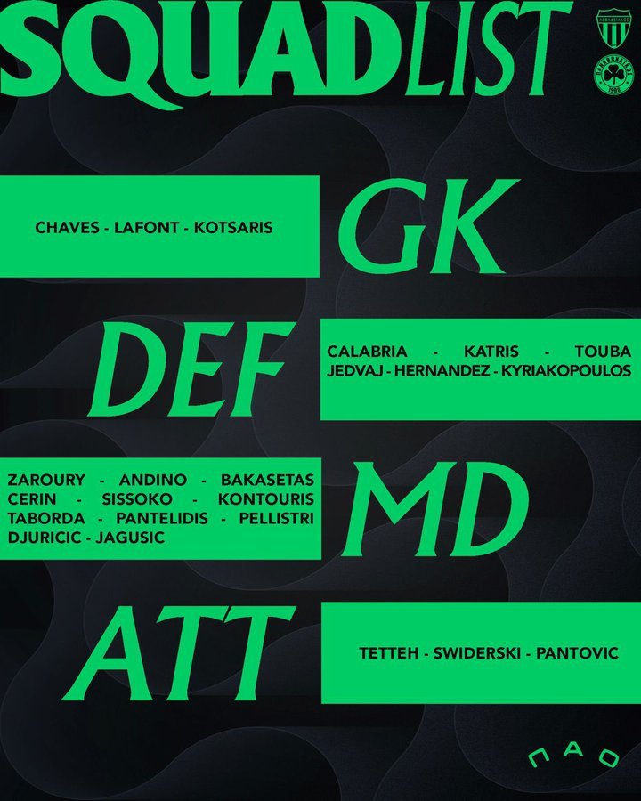 Όπως αναμενόταν οι Ίνγκασον και Ρενάτο Σάντσες δεν είναι στην αποστολή του Παναθηναϊκού για τον αγώνα της Κυριακής με τον Λεβαδειακό.