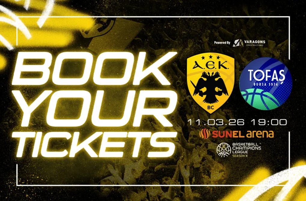 H AEK BC ενημερώνει, ότι συνεχίζεται η διάθεση εισιτηρίων για τον αγώνα της χρονιάς για τη «Βασίλισσα», με αντίπαλο την Τόφας, όπου κρίνεται «εν πολλοίς» η πρωτιά στον Όμιλο.
