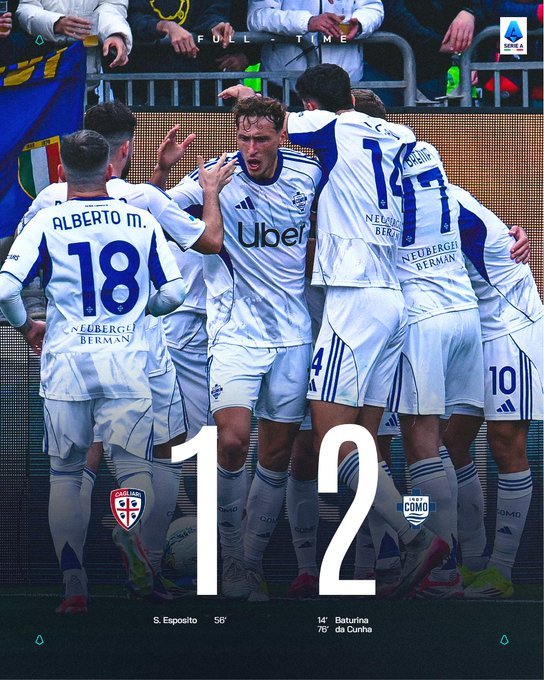 Δύσκολο διπλό με 2-1 πανηγύρισε η Κόμο στην έδρα της Κάλιαρι και παρέμεινε σε τροχιά Champions League, καθώς έπιασε την Ρόμα, που βρίσκεται στη 4η θέση κι έχει όμως και ματς λιγότερο, στου; 51 βαθμούς. Πέμπτο ματς που μένουν μακριά από τα τρίποντα οι γηπεδούχοι, οι οποίοι βρίσκονται στο +6 από την επικίνδυνη ζώνη