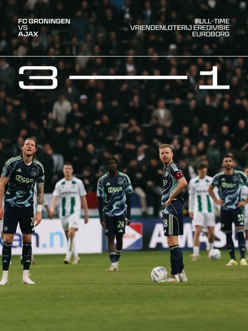 Δεν σηκώνει κεφάλι ο Άγιαξ, που έχασε με 3-1 στην έδρα τηε3 Χρόνινχεν και αγνοεί τη νίκη για 3η σερί αγωνιστική.