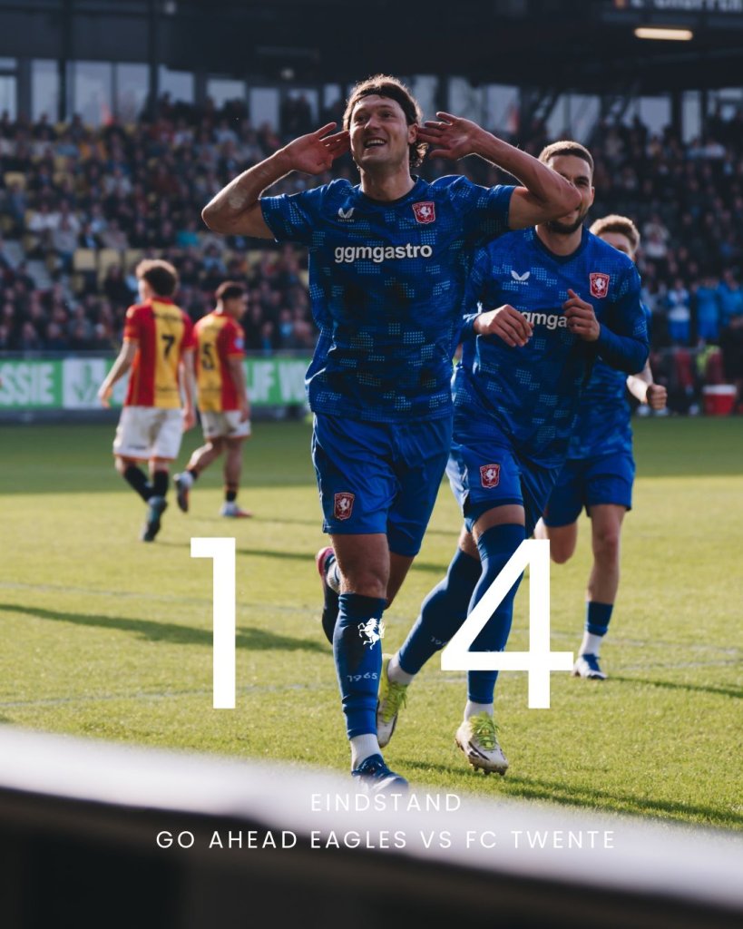 Με δέκα νίκες και δέκα ισοπαλίες, στα 20 τελευταία παιχνίδια της, η Τβέντε μπορεί να ονειρεύεται έξοδο στο Champions League, καθώς, μετά και το 4-1 στην έδρα της Γκόου Αχέντ Ιγκλς, προσπέρασε τον Άγιαξ και βρίσκεται στη τέταρτη θέση.