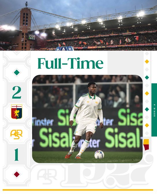 Η Τζένοα κέρδισε με 2-1 τη Ρόμα κι έκανε άλμα παραμονής, βάζοντας τους «τζιαλορόσι» σε δύσκολη θέση, σχετικά με τη διεκδίκηση της τετράδας.