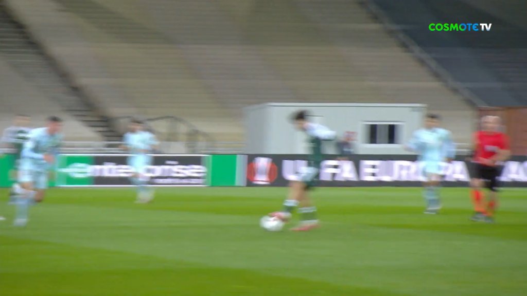 Μεγάλη ευκαιρία για τον Παναθηναϊκό με τον Κυριακόπουλο να σουτάρει χαμηλά με το αριστερό και την μπάλα με ανάποδο φάλτσο να φεύγει άουτ