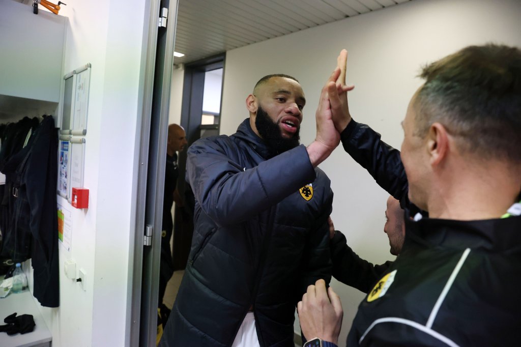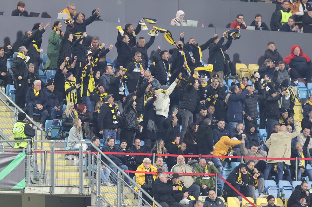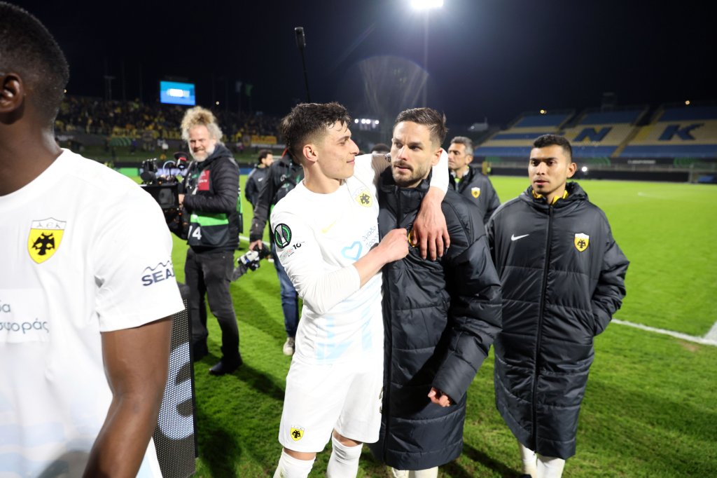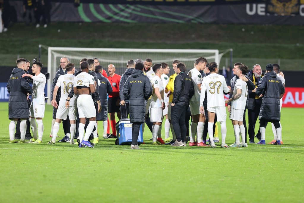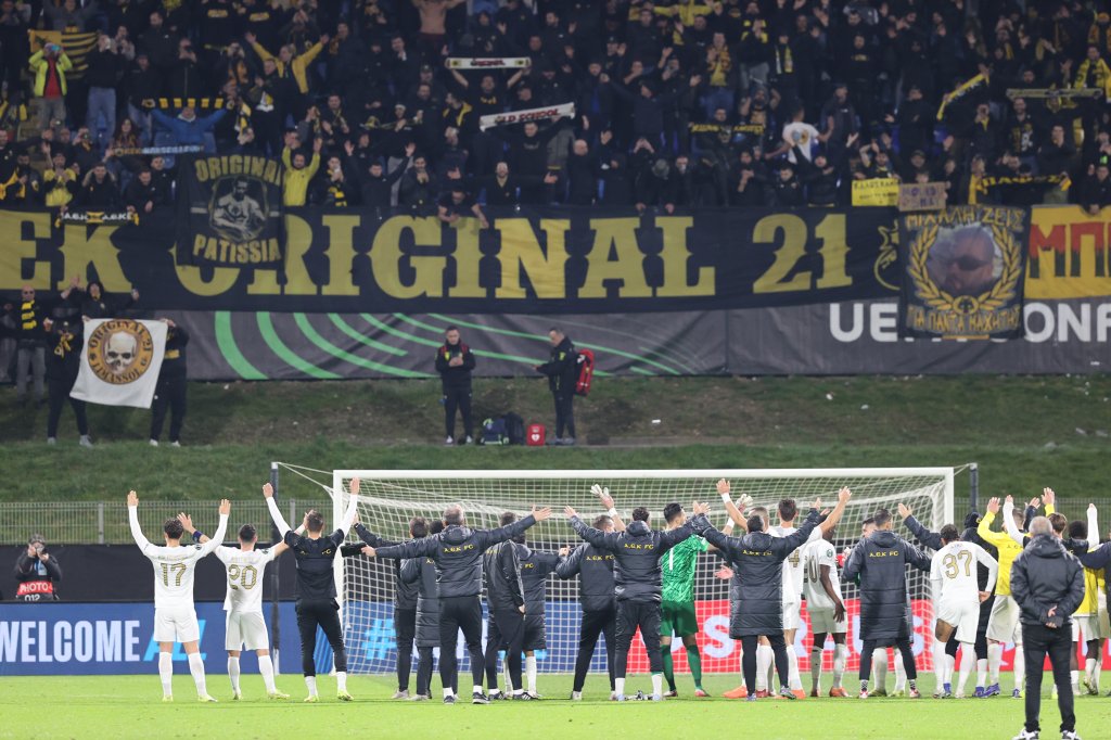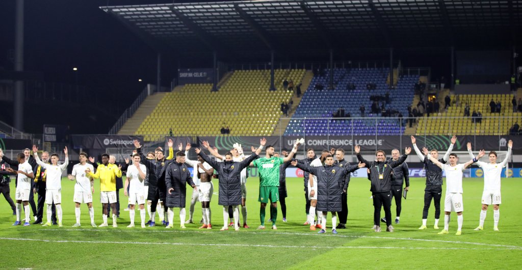 Πάρτι στον αγωνιστικό χώρο από τους παίκτες της ΑΕΚ. Πάρτι στην εξέδρα από τους 2.000 οπαδούς της. Παίκτες και λαός ενώθηκαν με τη λήξη του αγώνα στο Τσέλιε και πανηγύρισαν μαζί την τεράστια νίκη με 0-4, που βάζει βάσεις πρόκρισης για την ομάδα του Νίκολιτς στους «8» του Conference League.