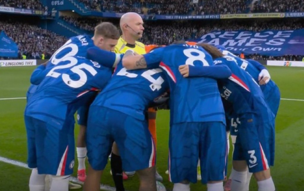 Πριν από το παιχνίδι με τη Νιούκαστλ, στο "Στάμφορντ Μπριτζ", οι παίκτες της Τσέλσι συγκεντρώθηκαν στο κέντρο του γηπέδου για τον καθιερωμένο όρκο νίκης.