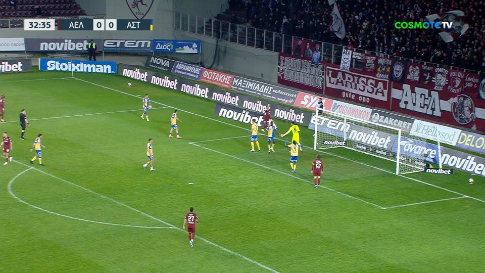 Στο 33ο λεπτό ο Φερίγκρα έκανε το σουτ από το πέναλτι, ο Σουρλής έβαλε την προβολή μέσα στη μικρή περιοχή κι όμως αστόχησε.