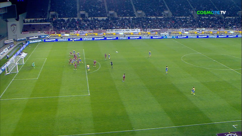 Στο 45+2ο λεπτό ο Αστέρας άγγιξε το 2ο γκολ, καθώς μετά από εκτέλεση φάουλ από αριστερά, ο Αλμύρας πήρε την κεφαλιά αλλά ο Αναγνωστόπουλος και το δοκάρι, έσωσαν την ΑΕΛ.