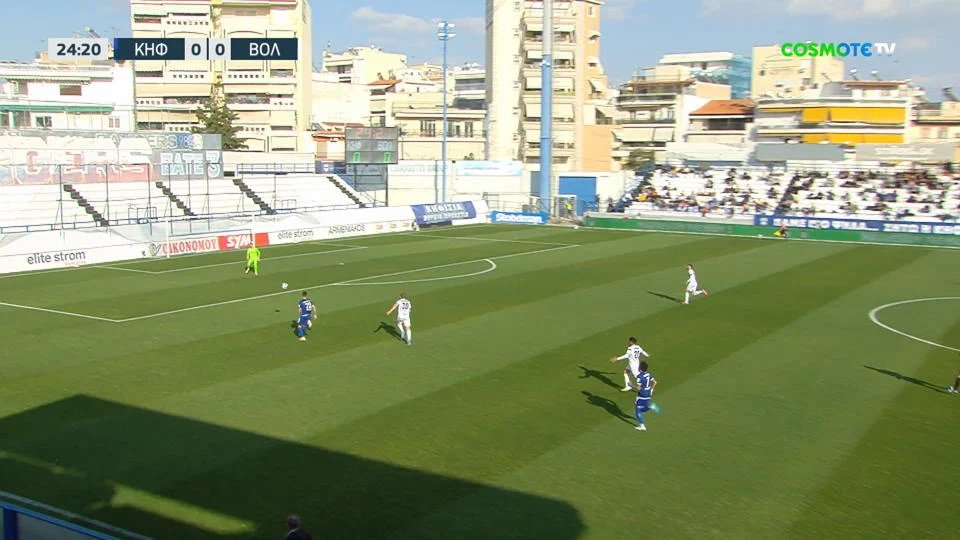 Μπαλιά στην πλάτη της άμυνας από τον Λαρουσί, ο Χριστόπουλος έφυγε τετ α τετ με τον Σιαμπάνη και πλάσαρε ψύχραιμα στη δεξιά γωνία για το 1-0.