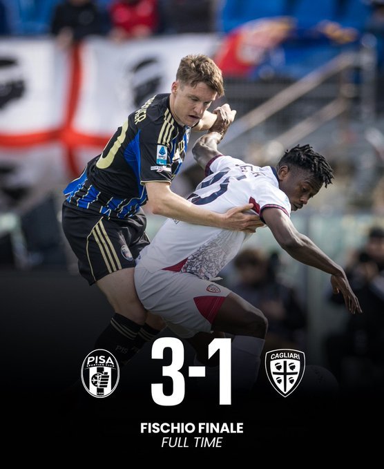 Τι κι αν αγωνίστηκε με δέκα παίκτες από νωρίς, η Πίζα κέρδισε την Κάλιαρι με 3-1, πήρε το πρώτο της τρίποντο μετά από το Νοέμβριο κι έχει ακόμη λίγες ελπίδες παραμονής.