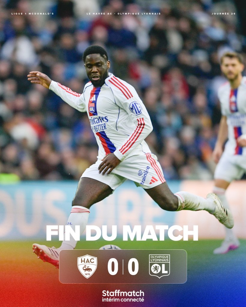 Στο πρώτο μέρος, η ομάδα του Φονσέκα ήταν πιο δραστήρια, αλλά, βρήκε απέναντί της έναν πολύ καλό τερματοφύλακα, με τον Μορί Ντιό να κρατάει ανέπαφη την εστία των γηπεδούχων. Στο 52', η Λιόν σκόραρε, με κεφαλιά του Τολισό, αλλά το γκολ δεν μέτρησε για οφσάιντ και, δυο λεπτά, μετά, η Χάβρη είχε δοκάρι με τον Μπουφάλ. Στο 56', οι γηπεδούχοι έμειναν με παίκτη λιγότερο, λόγω αποβολής, με απευθείας κόκκινη, του Ζαγκαντού, αλλά, δέκα λεπτά μετά, είχαν και δεύτερο δοκάρι, με τον Νέγκο. Η Λιόν δεν βρήκε γκολ, συμπλήρωσε έξι παιχνίδια χωρίς νίκη και θα υποδεχθεί τη Θέλτα, στη ρεβάνς του 1-1. Η Χάβρη συμπλήρωσε τέσσερα σερί ματς χωρίς να σκοράρει, αλλά, βρίσκεται στο +8 από τη τελευταία τριάδα.