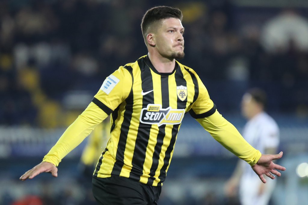 Στο 63ο λεπτό η ΑΕΚ ισοφάρισε σε 1-1 τον Ατρόμητο. Πέρασε η κάθετη στον Βάργκα, κόπηκε απότον Καραμάνη, στρώθηκε η μπάλα στον Γιόβιτς που με φανταστικό σουτ με το δεξί από το ύψος της περιοχής έστειλε τη μπάλα στο "παράθυρο". Πανέμορφο τέρμα.