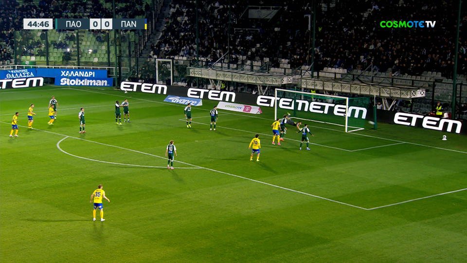 Φοβερό σουτ του Ματσάν με το δεξί από αριστερά εντός περιοχής του Παναθηναϊκού, «πέταξε» ο Κότσαρης, η μπάλα δίπλα από το αριστερό δοκάρι