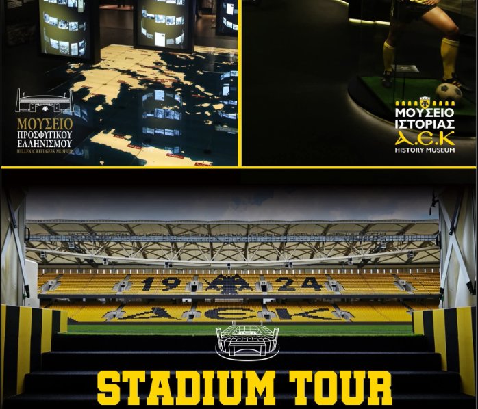 Από τη Διεύθυνση των Μουσείων Ιστορίας της ΑΕΚ και Προσφυγικού Ελληνισμού στην ALLWYN Arena γίνεται γνωστό ότι την τρέχουσα εβδομάδα θα πραγματοποιηθούν Stadium tour MONO το Σάββατο 21 Μαρτίου.