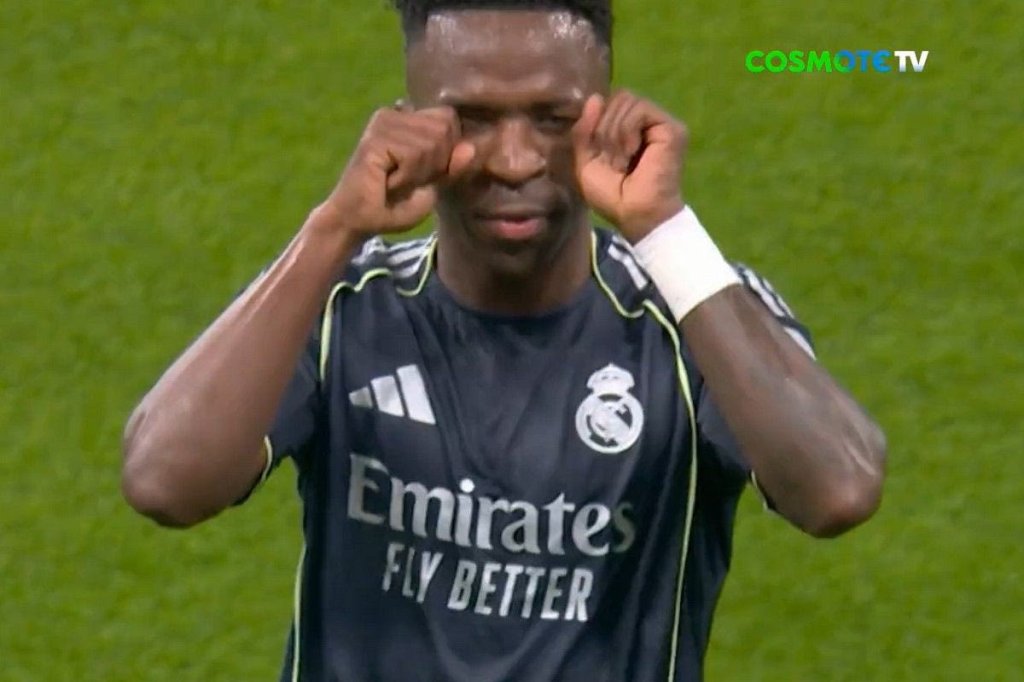 Με αυτό τον τρόπο ο Βινίσιους ήθελε και να τρολάρει αλλά και να απαντήσει για το πανό, στο περυσινό παιχνίδι των δυο ομάδων. Τότε, οι φίλοι της Μάντσεστερ Σίτι είχαν ετοιμάσει πανό, στο οποίο απεικονιζόταν ο Ρόδρι με τη Χρυσή Μπάλα και τα λόγια "σταμάτα να κλαις", ως μπηχτή για τις διαμαρτυρίες του Βινίσιους.