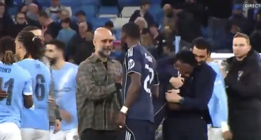 Με το σφύριγμα της λήξης, στο Μάντσεστερ Σίτι-Ρεάλ Μαδρίτης 1-2, ο Πεπ Γκουαρδιόλα μπήκε στον αγωνιστικό χώρο για τις καθιερωμένες χειραψίες με τους ποδοσφαιριστές της Ρεάλ.