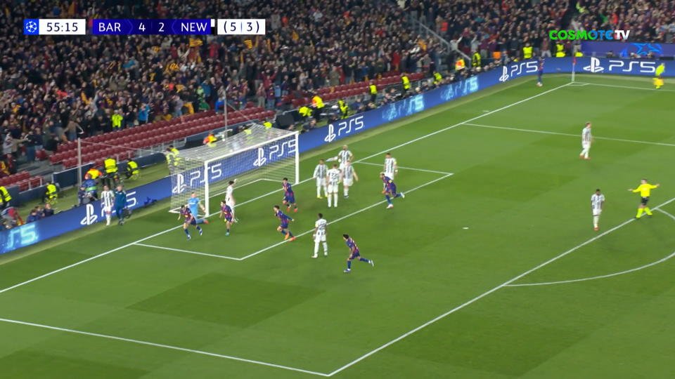 Η Μπαρτσελόνα είχε πατήσει το γκάζι και στο 56ο λεπτό μετά από κόρνερ, ο Λεβαντόφσκι έκανε το 5-2 με κεφαλιά ενώ στο 61’ ο Γιαμάλ έδωσε όμορφα στον Λεβαντόφσκι, που έφυγε μόνος με τον Ράμσντεϊλ και τον εκτέλεσε για το 6-2.