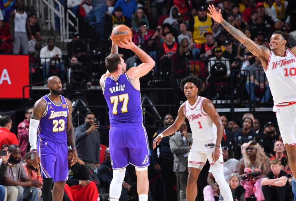 Με τον Λούκα Ντόντσιτς να βάζει 40 πόντους και τον Λεμπρόν Τζέιμς να καταγράφει ακόμα ένα μοναδικό ρεκόρ, στα χρονικά του NBA, οι Λος Άντζελες Λέικερς νίκησαν στο Χιούστον, 124-116 τους Ρόκετς, και παραμένουν αήττητοι για έβδομο σερί παιχνίδι. Στα πρώτα λεπτά της δεύτερης περιόδου, οι Λέικερς πήραν το μεγαλύτερο προβάδισμά τους στο παιχνίδι, +13 για το 32-45, με την ομάδα του Λος Άντζελες να προηγείται 55-67 στο τέλος του ημιχρόνου. Με σερί 8-0, οι Ρόκετς πέρασαν μπροστά στο σκορ, 75-72, και είχαν το προβάδισμα, 92-89, ενόψει τέταρτου 12λεπτου. Στο 96-102 των Λέικερς, οι γηπεδούχοι απάντησαν με σερί 9-0 για το 105-102, 6:39 λεπτά πριν το τέλος. Τα διαδοχικά τρίποντα των Χατσιμούρα, Ντόντσιτς έδωσαν προβάδισμα τεσσάρων πόντων, 109-113, στους Λέικερς, με 3:14 λεπτά για το φινάλε. Λίγο αργότερα, το κάρφωμα του Λεμπρόν, το λάθος του Ντουράντ και το τρίποντο του Ντόντσιτς έφεραν την ομάδα του Λος Άντζελες στο +9, 111-120 στα 58 δευτερόλεπτα.