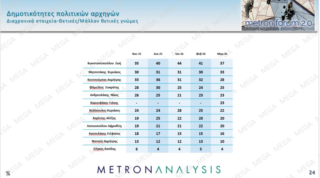 Σταθερά δεύτερο είναι πλέον το ΠΑΣΟΚ και στην δημοσκόπηση της Metron Analysis που παρουσιάστηκε στο κεντρικό δελτίο του Mega- ύστερα από αυτή της MRB για το Open.