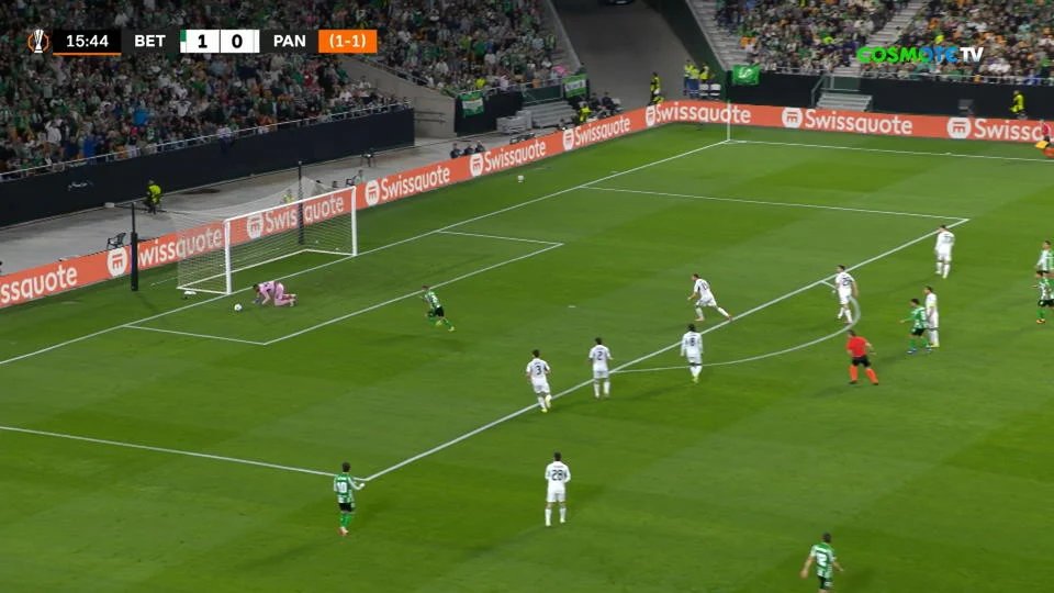 Χαμηλό σουτ του Φορνάλς, με διπλή επέμβαση ο Λαφόν μπλοκάρει. Πάλι έτρεξε για το ριμπάουντ παίκτης της Μπέτις με «κολλημένη» όλη την άμυνα του Παναθηναϊκού